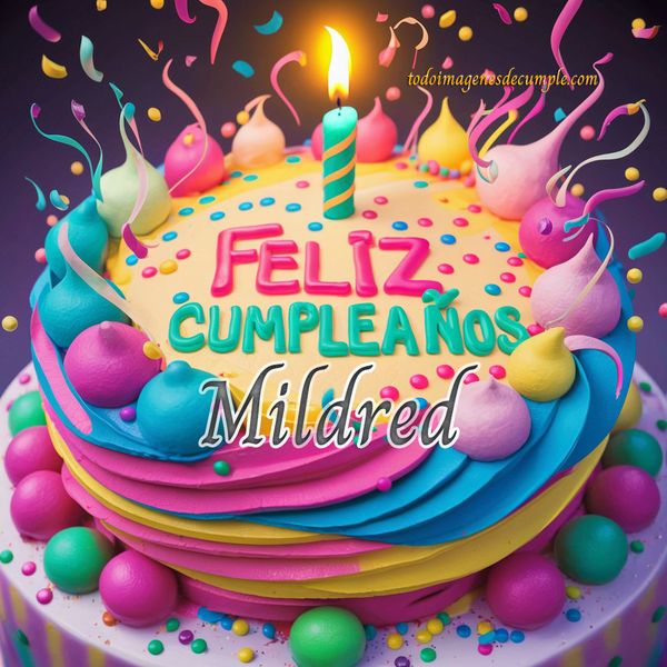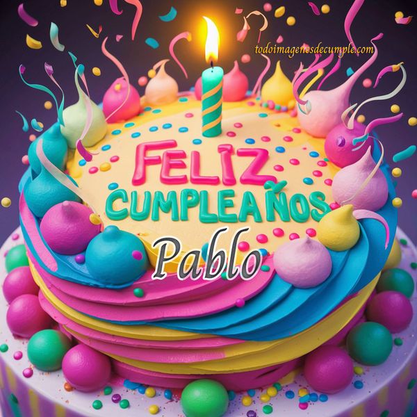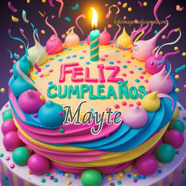 Les dejamos este nuevo modelo de imágenes de cumpleaños con nombres personalizados. Se trata de un diseño muy colorido con un pastel de cumpleaños como protagonista. El mismo tiene muchas decoraciones de colores y una vela encendida. Sobre el pastel está escrito el texto feliz cumpleaños y el nombre de la persona.