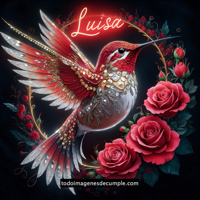 Bonito diseño de imágenes con nombres, en esta oportunidad el color elegido es el rojo y el protagonista exclusivo un hermoso picaflor en este color rodeado de hermosas rosas rojas. Por encima del mismo escrito en color rojo neón el nombre que editamos. Este diseño es hermoso y estamos seguros que les encantará no solo para ustedes sino también para regalar a sus amigas y familiares. Busca tu nombre abajo y descárgalo gratis en minutos.