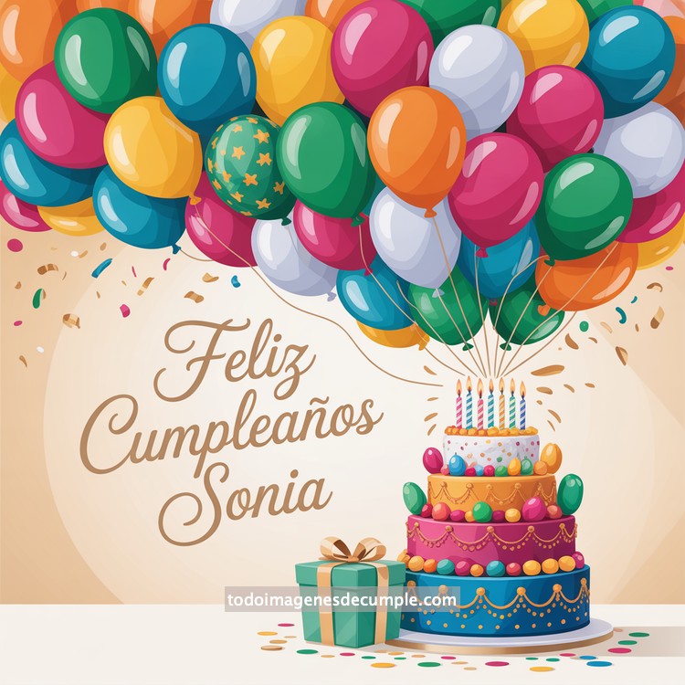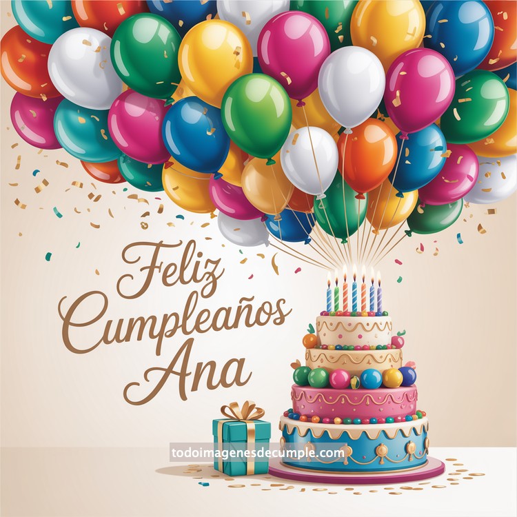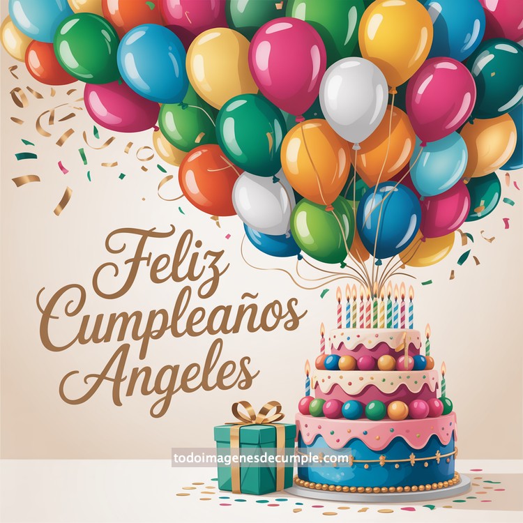 Hay momentos en los que una imagen dice mucho más que mil palabras, especialmente cuando está llena de color, alegría y un nombre especial. En esta colección de imágenes de feliz cumpleaños con nombre, encontrarás diseños personalizados para celebrar de una forma única. En el ejemplo que acompaña esta publicación, se aprecia un hermoso pastel de varios pisos decorado con tonos dorados, rosados y azules, rodeado de una lluvia de confeti y un ramo de globos de todos los colores. Justo en el centro, el mensaje de Feliz Cumpleaños junto al nombre editado transmite calidez y felicidad, perfecto para dedicar con cariño.