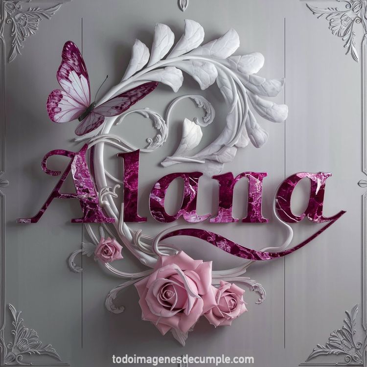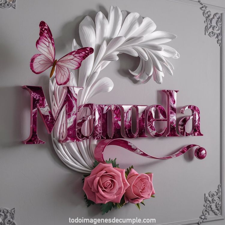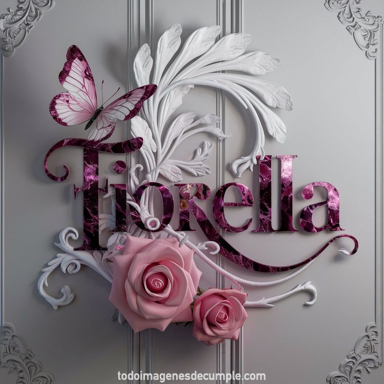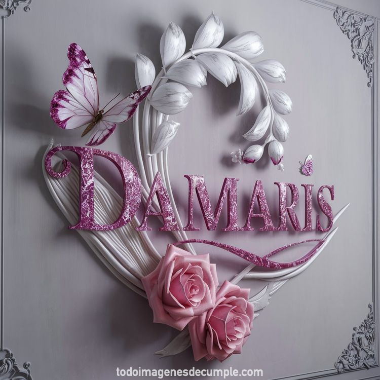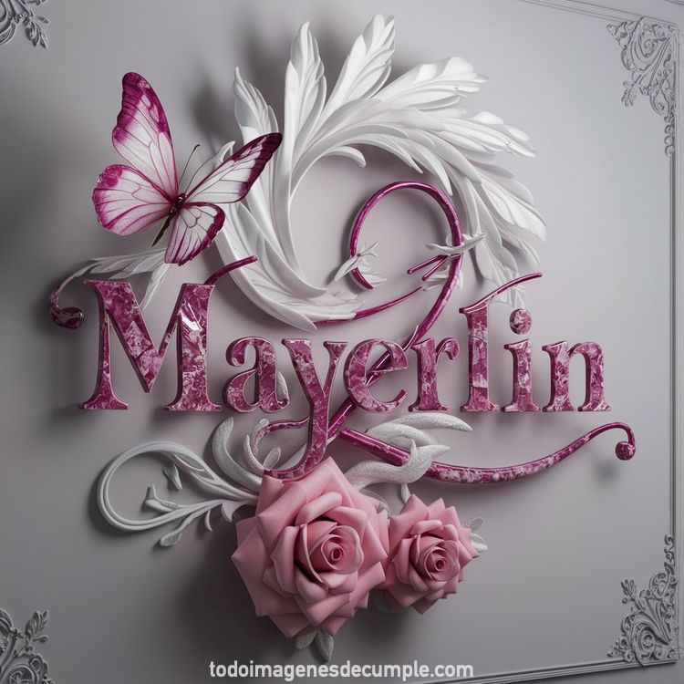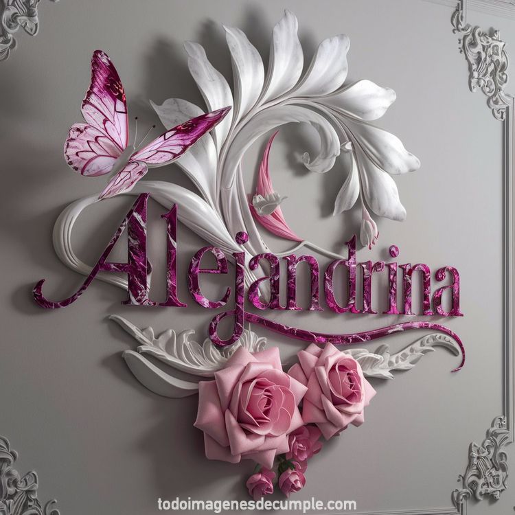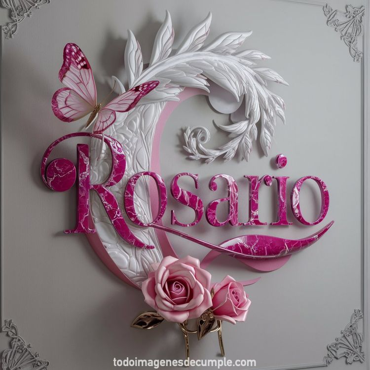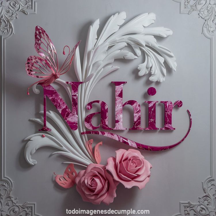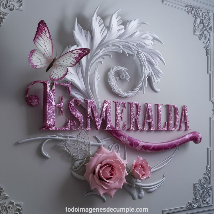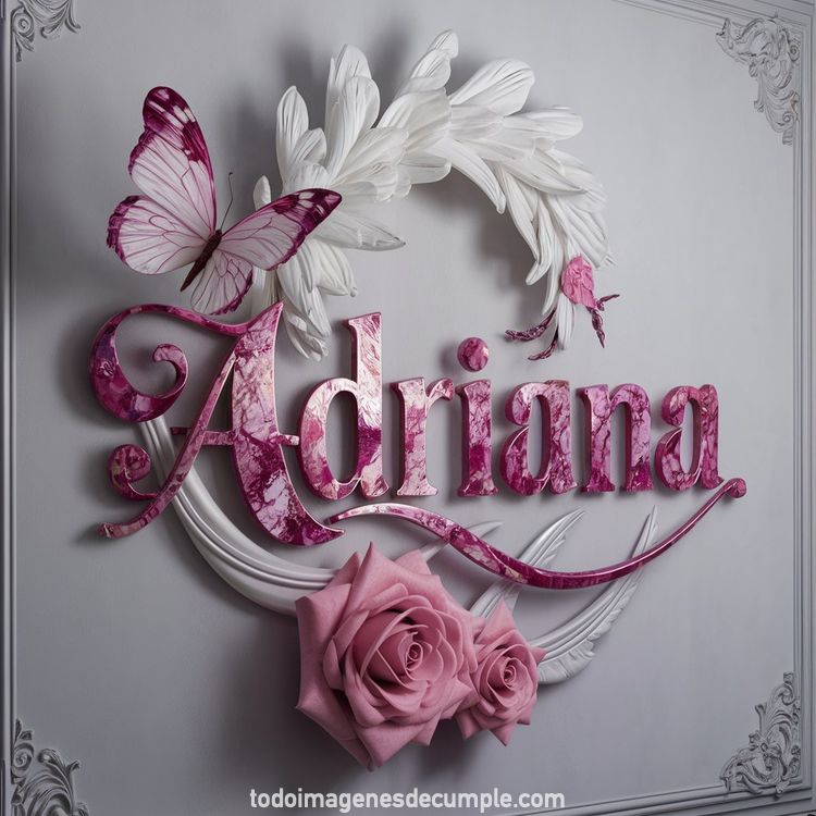 Si están buscando las mejores imágenes con nombres personalizados están de suerte, porque hoy queremos compartir con ustedes este nuevo diseño muy bello y elegante. Como podrán ver, se trata de un modelo donde se ve como un adorno aplique de pared que tiene un arreglo floral blanco y el nombre escrito en una especie de mármol fucsia. Además tiene decoraciones como flores y mariposas.