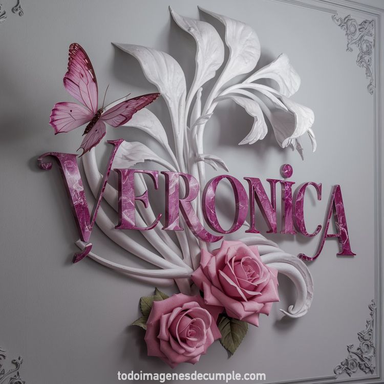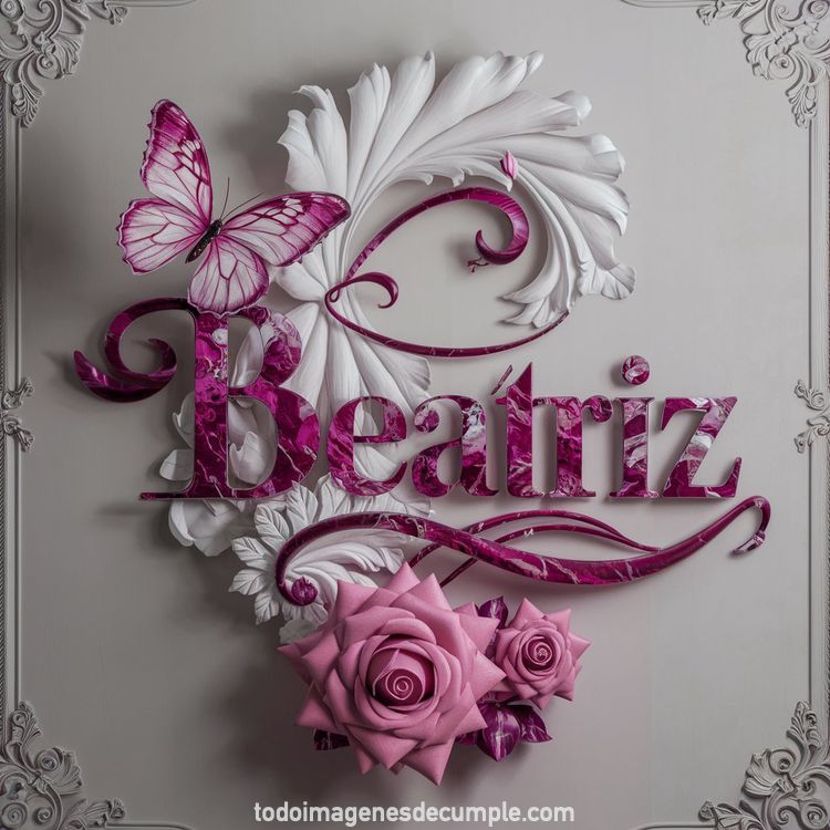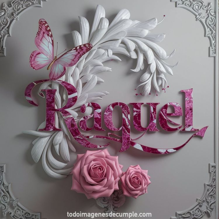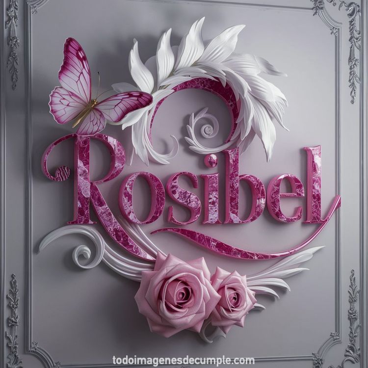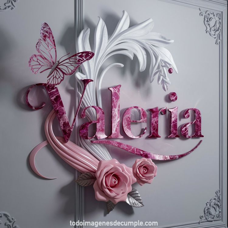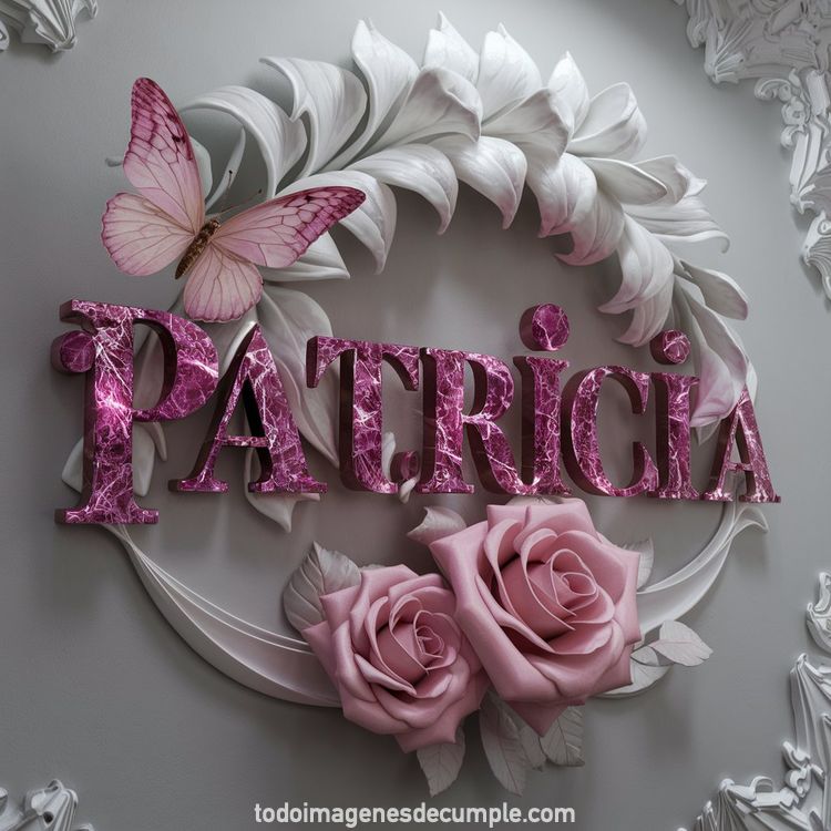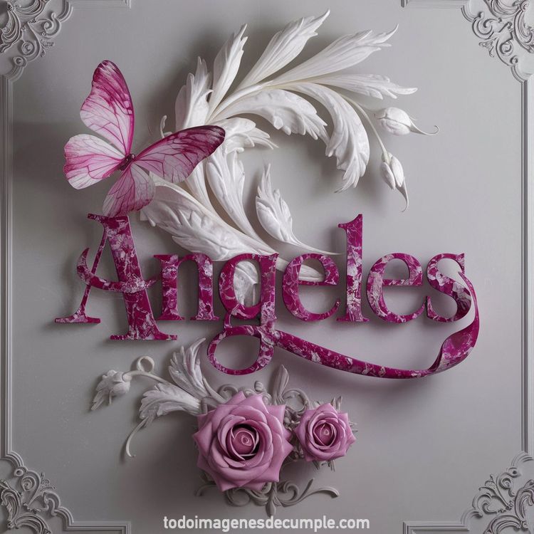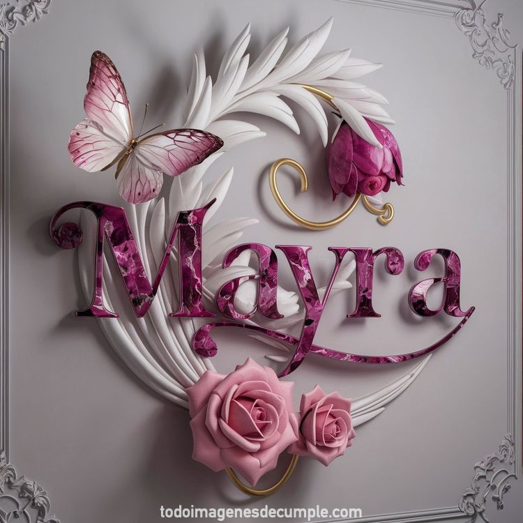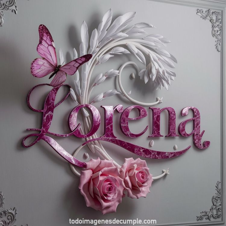 Si están buscando las mejores imágenes con nombres personalizados están de suerte, porque hoy queremos compartir con ustedes este nuevo diseño muy bello y elegante. Como podrán ver, se trata de un modelo donde se ve como un adorno aplique de pared que tiene un arreglo floral blanco y el nombre escrito en una especie de mármol fucsia. Además tiene decoraciones como flores y mariposas.