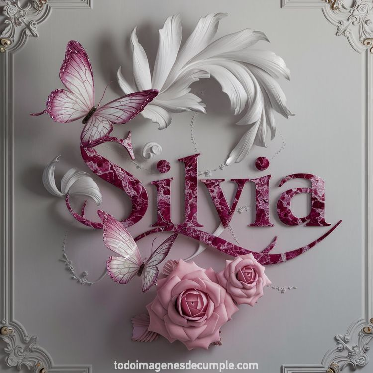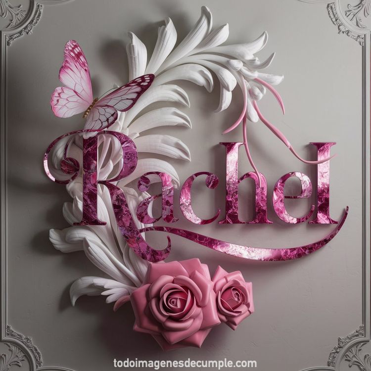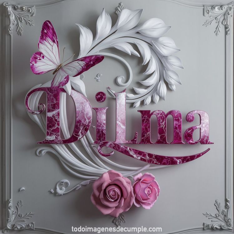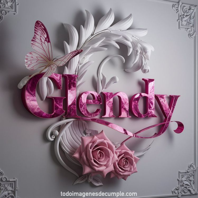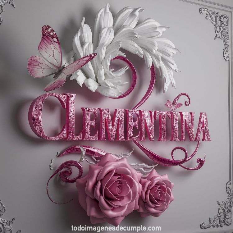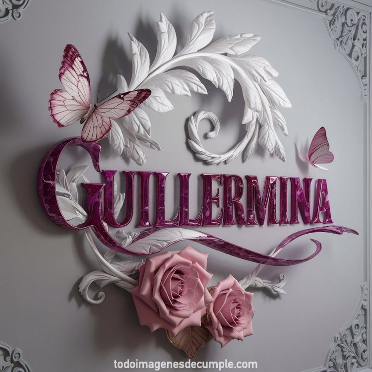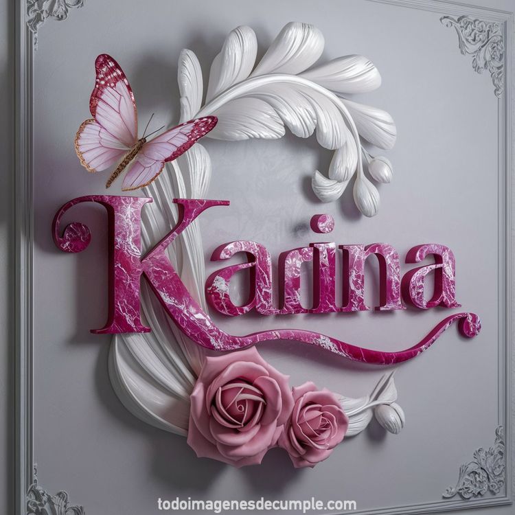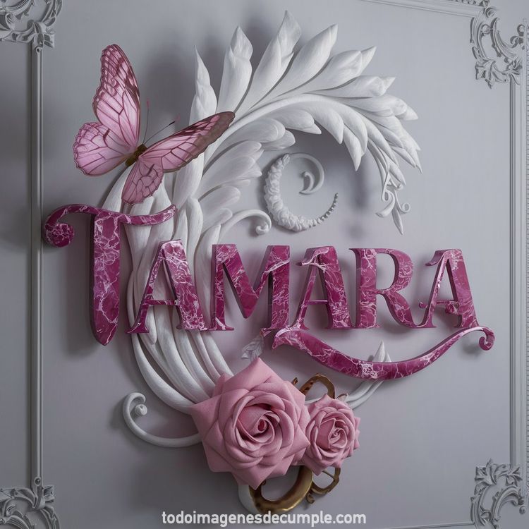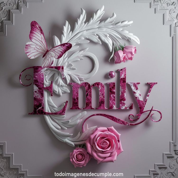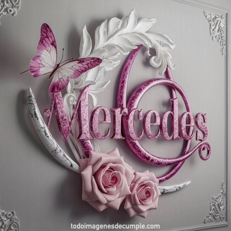 Si están buscando las mejores imágenes con nombres personalizados están de suerte, porque hoy queremos compartir con ustedes este nuevo diseño muy bello y elegante. Como podrán ver, se trata de un modelo donde se ve como un adorno aplique de pared que tiene un arreglo floral blanco y el nombre escrito en una especie de mármol fucsia. Además tiene decoraciones como flores y mariposas.